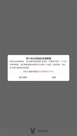 进入本站的袋鼠相册后,点击“软件”选项,仔细阅读使用协议与隐私政策,确认无误后点击“同意”按钮。