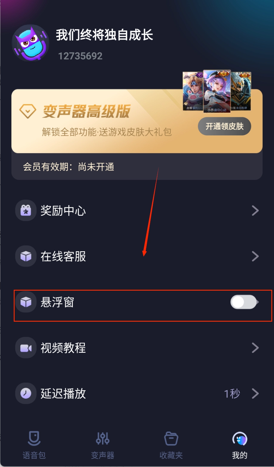 在启动游戏前先开启悬浮窗功能,这样就能在游戏界面借助悬浮按钮迅速切换各类变声效果,还能实时对音调与音色参数进行调整。