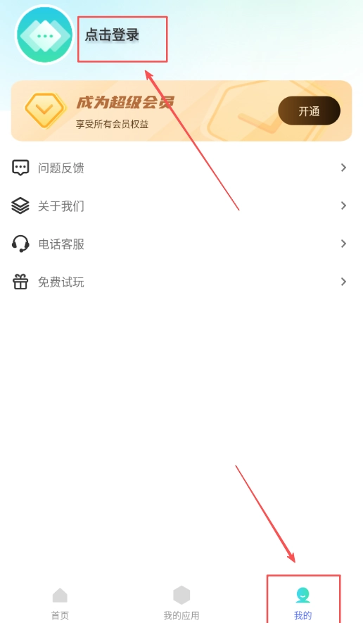 打开多开分身工具大师后,在软件界面里找到“我的”页面入口,点击进入“我的”页面,然后在这个页面中找到登录选项并点击它。