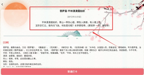 AI智能朗读功能仿照古人吟诵的韵律特点,使诗词学习既能带来听觉上的愉悦体验,又能增强记忆效果。