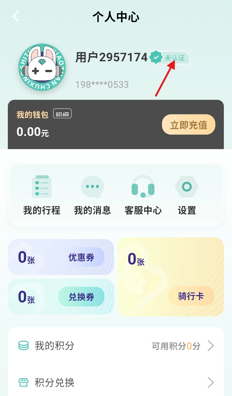 在个人中心页面,找到用户名旁边标注的“未认证”提示,点击该提示即可进入认证入口。