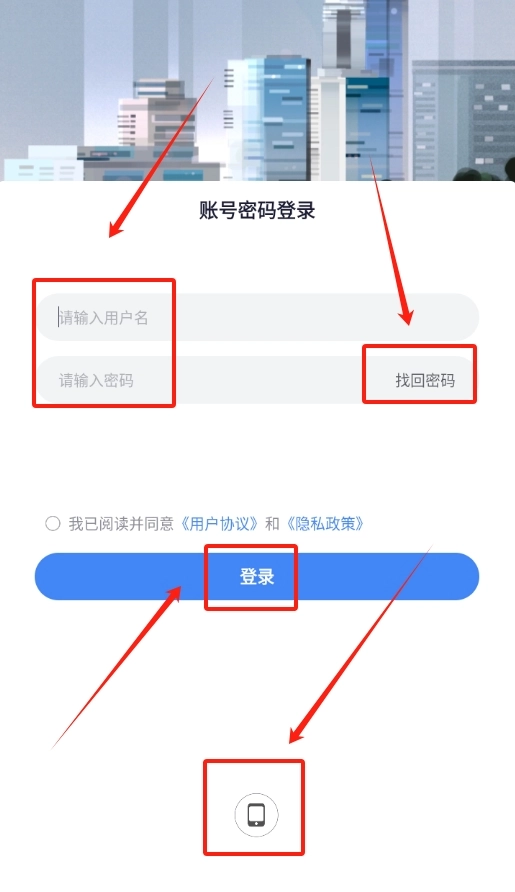 打开软件后进入登录页面,输入已注册的手机号与密码,随后点击登录按钮,就能进入主界面。