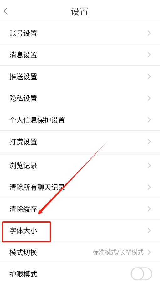 在设置页面中,找到“字体大小”选项,点击进入其调整界面。