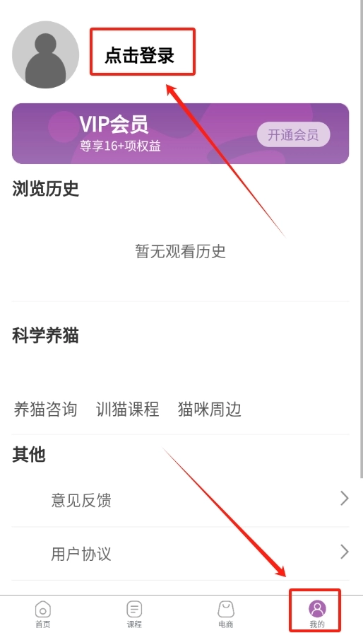打开软件后,先进入“我的”页面,再点击登录按钮来准备登录账号。