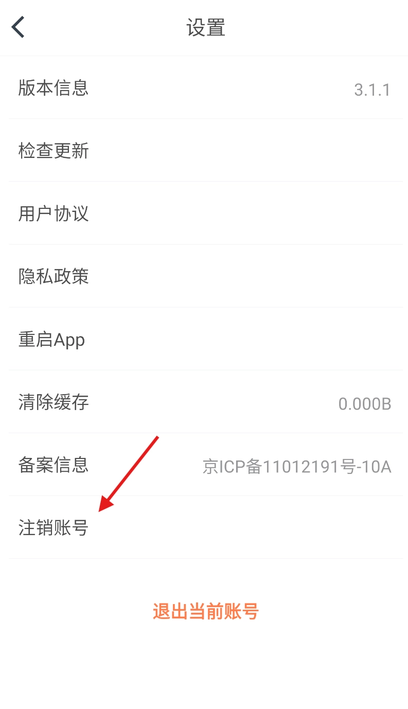 进入设置界面后,向下滑动屏幕找到“注销账号”选项并点击,即可进入账号注销流程页面。