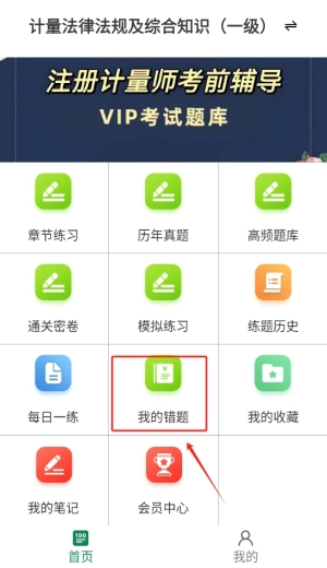 点击同意按钮后,即可进入注册计量师鸣题库的主界面,开启您的备考之旅。