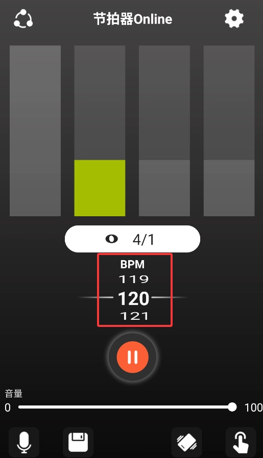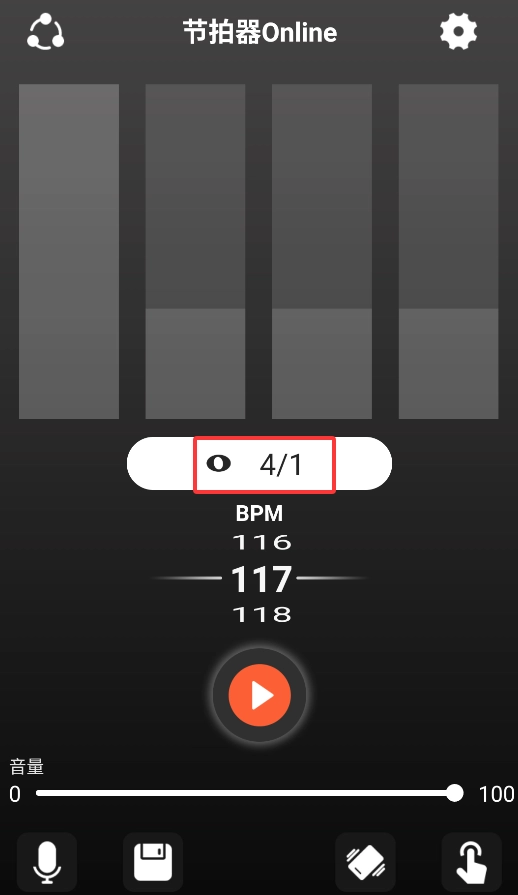 打开节拍器Online后,在首页可以借助滑动条或者直接输入数字来调整BPM(每分钟节拍数)的数值。
