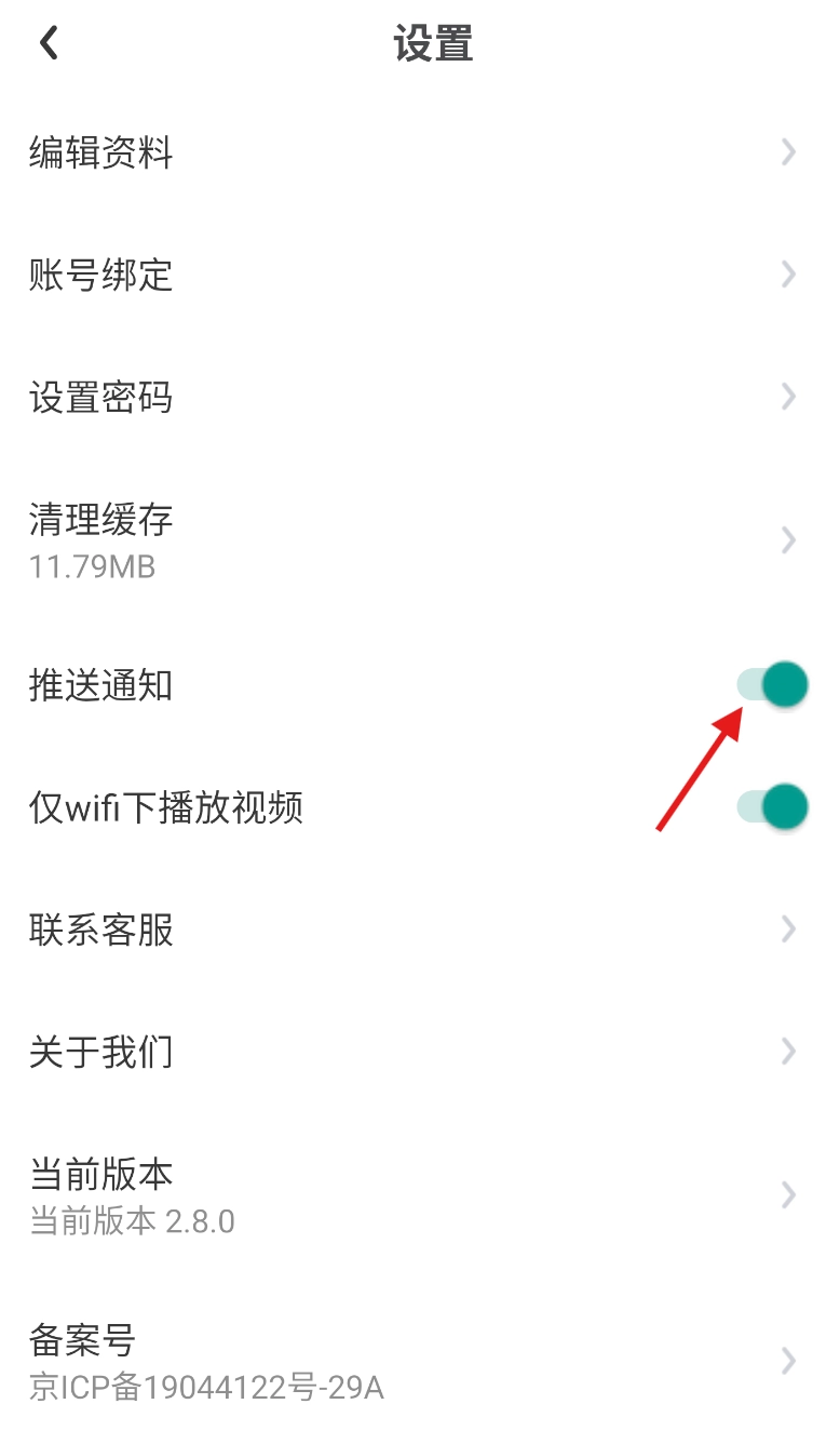 进入设置页面,找到“推送通知”功能旁边的开关,点击它就能完成关闭操作。