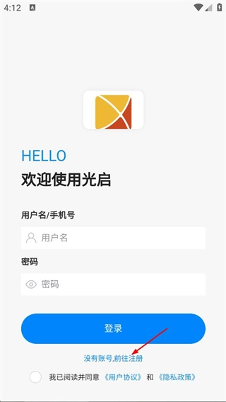 在仔细阅读用户协议与隐私政策后,点击“同意”按钮,即可进入光启的登录界面。