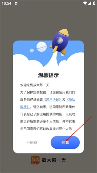 在阅读用户协议与隐私政策后,点击同意按钮,即可进入“放大每一天”的主界面。