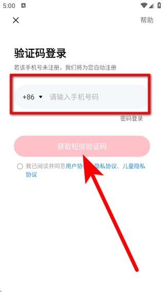 在验证码登录的界面里,先输入自己的手机号码,接着点击“获取短信验证码”按钮。