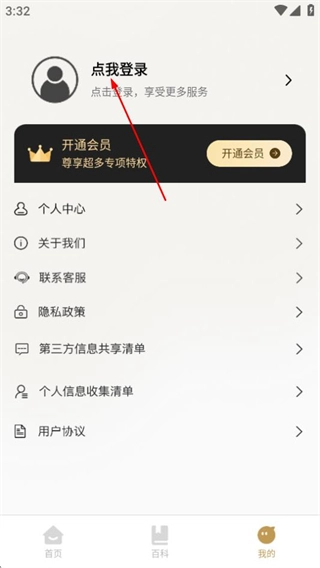 在个人中心页面,点击“点我登录”区域,即可进入登录页面。