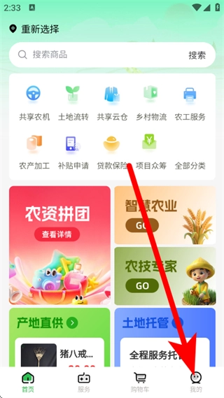 在正丰云田的首页,点击页面底部的“我的”选项,即可进入个人中心页面。