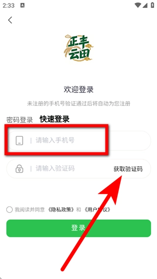 在登录页面,输入手机号,点击获取验证码。