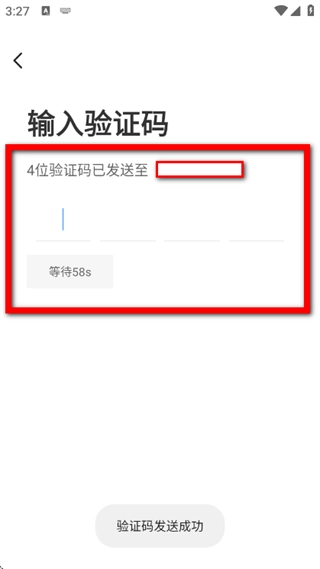 在验证码输入页面,于输入框中填写验证码,即可完成登录或注册操作。