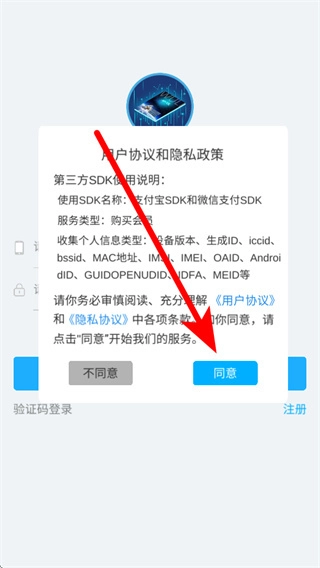 启动大实验家应用,待弹出相关弹窗后,点击“同意”按钮,即可进入账号登录界面。