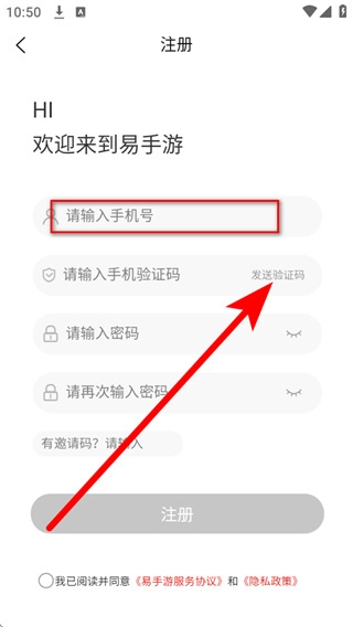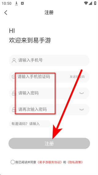 把收到的短信验证码输入到验证码框里,再设置好登录密码,最后点击注册按钮,就能完成账号的注册流程了。