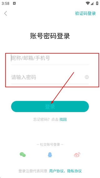 在账号密码登录页面,输入手机号和密码后点击登录按钮,就能完成登录操作。