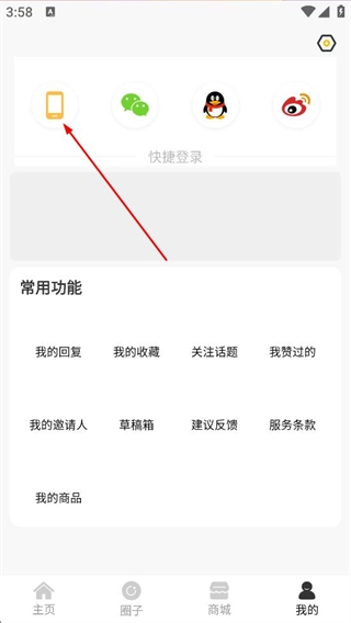 在个人页面里,点击手机图标,就能进入验证码登录界面。