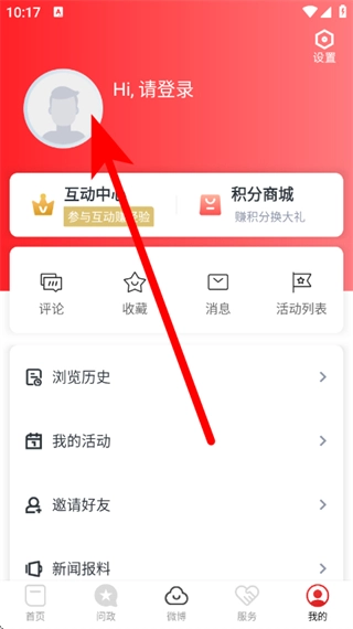 打开浔阳融媒,点击底部我的,进入我的页面。
