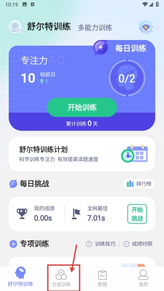 打开专注力训练类应用,点击底部的“全部训练”选项,即可进入训练分类页面。