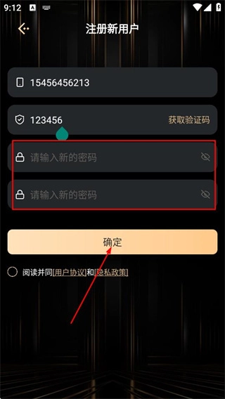 在输入验证码和新密码后,点击确定按钮,即可完成新用户的注册流程。