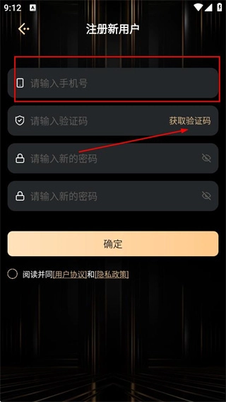 在注册新用户页面输入手机号,点击获取验证码。