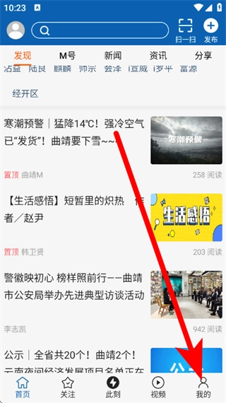 打开曲靖m,点击底部我的,进入用户中心页面。