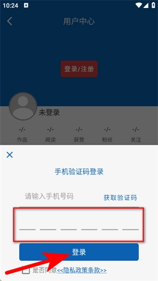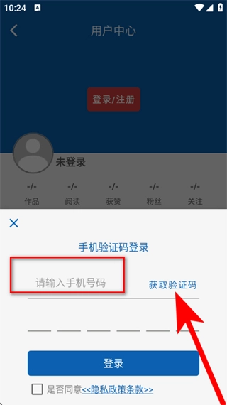 在用户中心页面,点击登录注册,进入注册页面。