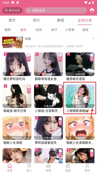 在分类页面,点击最热标签,进入最热语音列表页。