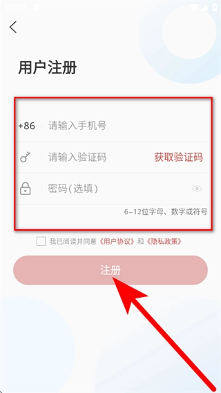 输入手机号码,点击“获取验证码”按钮,输入接收到的验证码及其他所需信息后,点击“注册”按钮,即可完成账号注册流程。