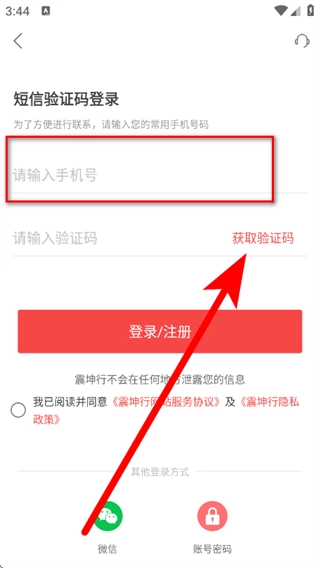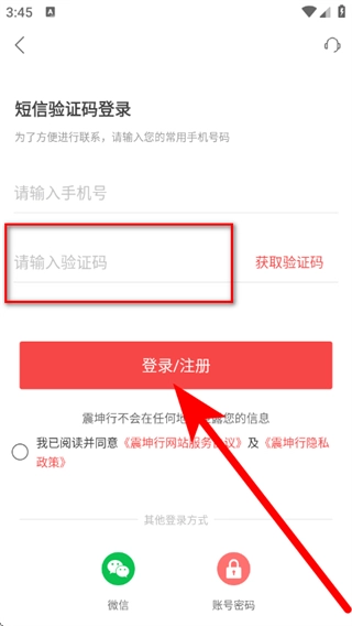 输入验证码后,勾选后,点击登录注册,完成操作。