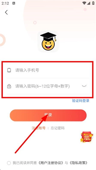 在登录界面,填写手机号与密码后点击登录按钮,即可完成登录流程。