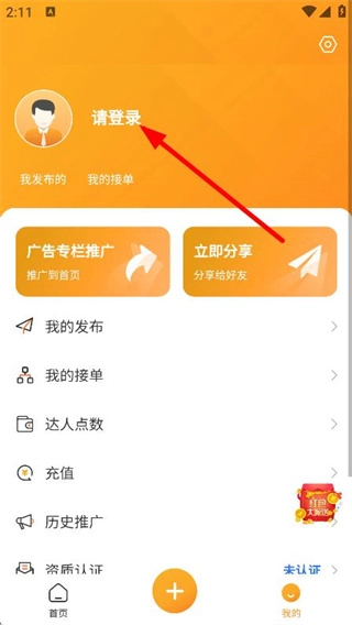 随后我们在首页,点击底部我的,进入个人页面。