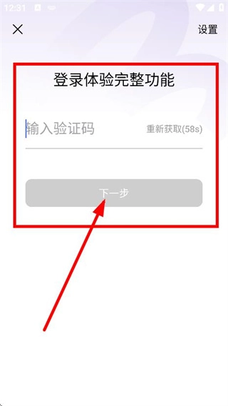 在验证码输入页面,输入获取到的验证码后,点击“下一步”按钮,即可完成登录流程。
