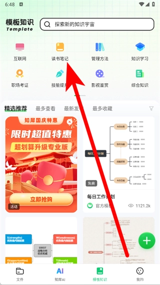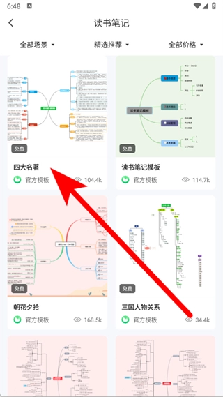 进入读书笔记页面后,选择思维导图模板。