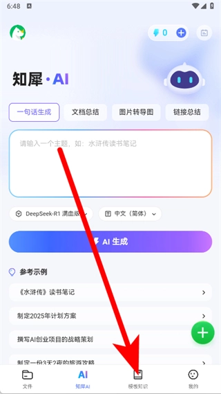 打开知犀思维导图,点击底部模板知识。