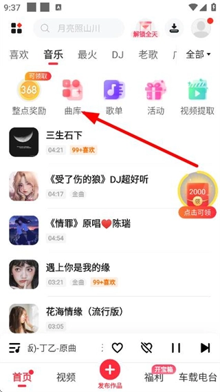 在软件首页,点击曲库,进入乐库页面。