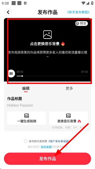 可以更换音乐背景等元素,确认无误后点击发布作品按钮,完成作品发布。