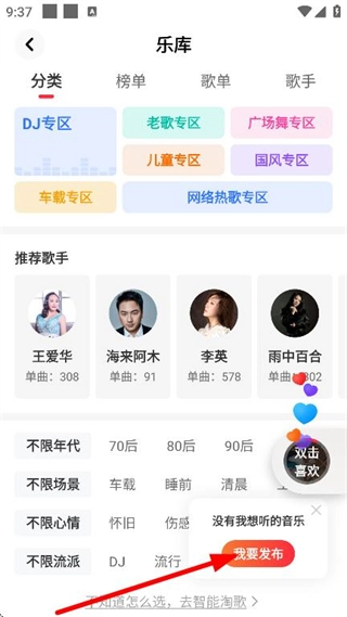 拥有海量正版音乐资源,覆盖经典歌曲、铃声、广场舞等全音乐种类,分类合集精准匹配用户喜好,无需付费即可畅听,句句入心,满足不同年龄、不同风格的免费音乐收听需求。