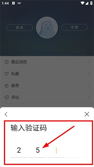 在验证码输入页面,填写接收到的验证码,以完成注册或登录的相关操作。