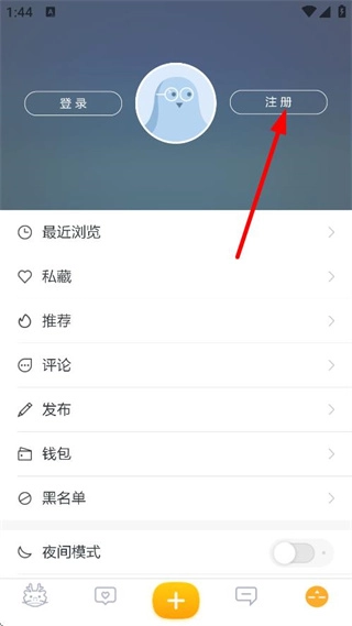 在个人相关页面,点击“注册”按钮,即可弹出注册登录相关的窗口。