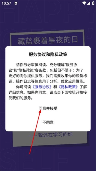 在服务协议与隐私政策的弹窗里,点击同意并接受相关条款,即可进入首页。