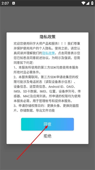 在隐私政策弹窗中,点击同意,进入书架页面。