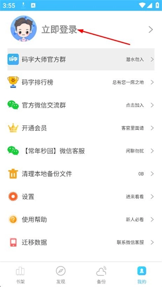 在我的页面上,点击“立即登录”按钮,即可进入码字大师的登录页面。