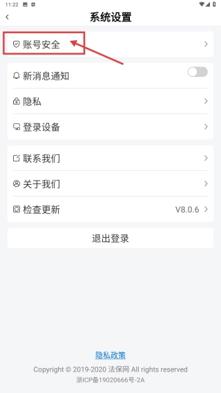在系统设置页面,点击账号安全选项,进入账号安全管理界面。
