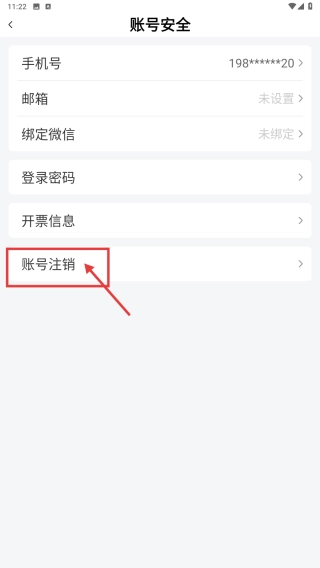 在账号安全页面,找到并点击账号注销的选项,随后执行账号注销的相关操作。