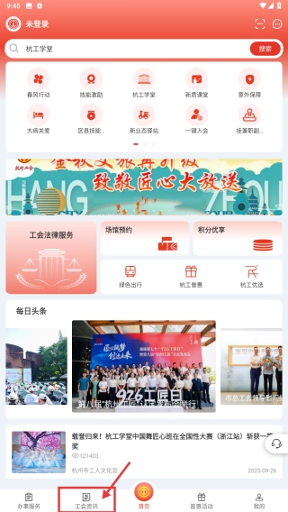 打开工会类应用,点击底部的工会资讯选项,进入工会资讯页面。