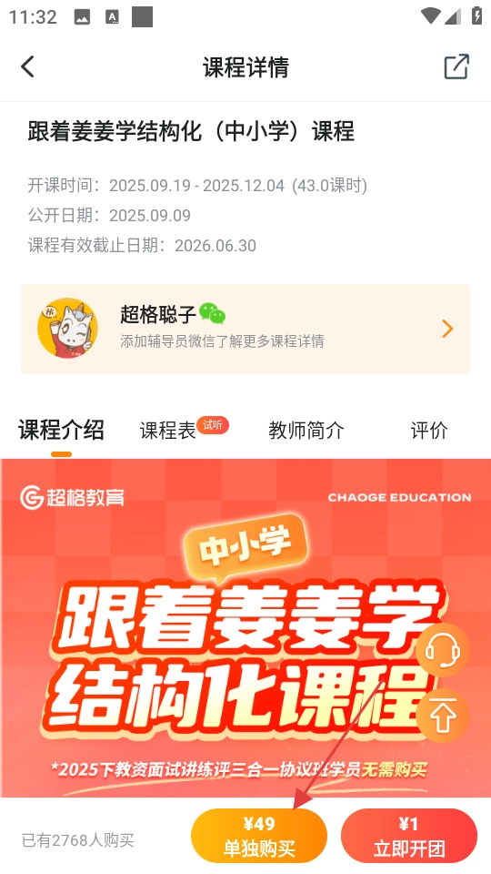 在课程页面找到“跟着姜姜学结构化中小学课程”并点击,即可进入该课程的详情页面。