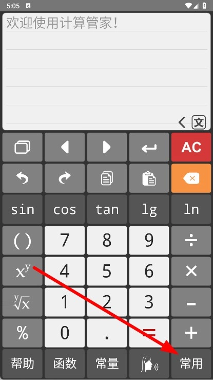 在主界面,点击常用选项,弹出功能列表。